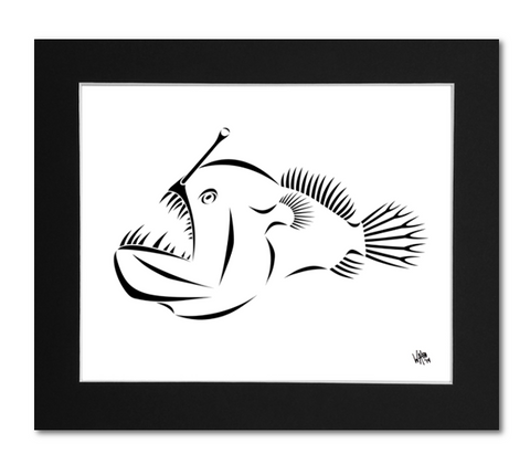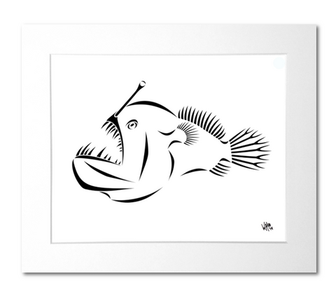 The Anglerfish Art Print, by artist Billy Walsh, is a bold and mysterious portrayal of a deep-sea predator known for its strange design and solitary presence.